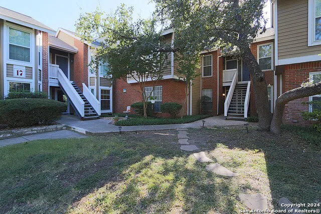 Discover The Chesapeake Condominiums, a beautifully oak lined oasis off Blanco Rd just north of Wurzbach Pkwy and directly across from Hardberger Park. Enjoy the walking trails along the lush HOA grounds or take advantage of the private access to Salado Creek Greenway which connects to Hardberger Park and other city trails. This updated and move-in ready 2 Bedroom 1 Bath Condo is perfectly situated at the rear of the development, with first floor access. You'll love the large dry bar with granite counters and the spacious living room that opens to the kitchen and dining area. The Galley kitchen features granite counters, deep stainless sink, large pantry, breakfast bar, and updated stainless appliances, including the French door refrigerator/freezer. The full Laundry Room with cabinets is located off the Kitchen. Two large bedrooms provide ample space for relaxed living. The large bathroom features dual sink vanity with granite counters, an abundance of lighting and mirrors, and a tub/shower combo with tile surround. The Primary Bedroom provides a large walk-in closet. Enjoy morning coffee or cool evening breezes on your private screened in covered patio, with access to a large storage closet. New vinyl rigid plank flooring and fresh paint throughout. Enjoy gated access, beautiful pool, private picnic/BBQ area, two tennis courts, and the best parks and City trails. Start enjoying this abundant condo lifestyle today! Hurry!